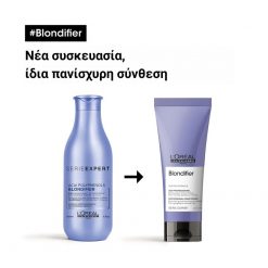 Επαγγελματική σύνθεση για την περιποίηση όλων των τύπων ξανθού. Εμπλουτισμένη με το εκχύλισμα Açai Berry, η κρέμα Serie Expert Blondifier προσφέρει πλούσια θρέψη, ενυδάτωση, απαλότητα και λάμψη στο ξανθό με θερμοπροστασία έως και τους 230°C.
