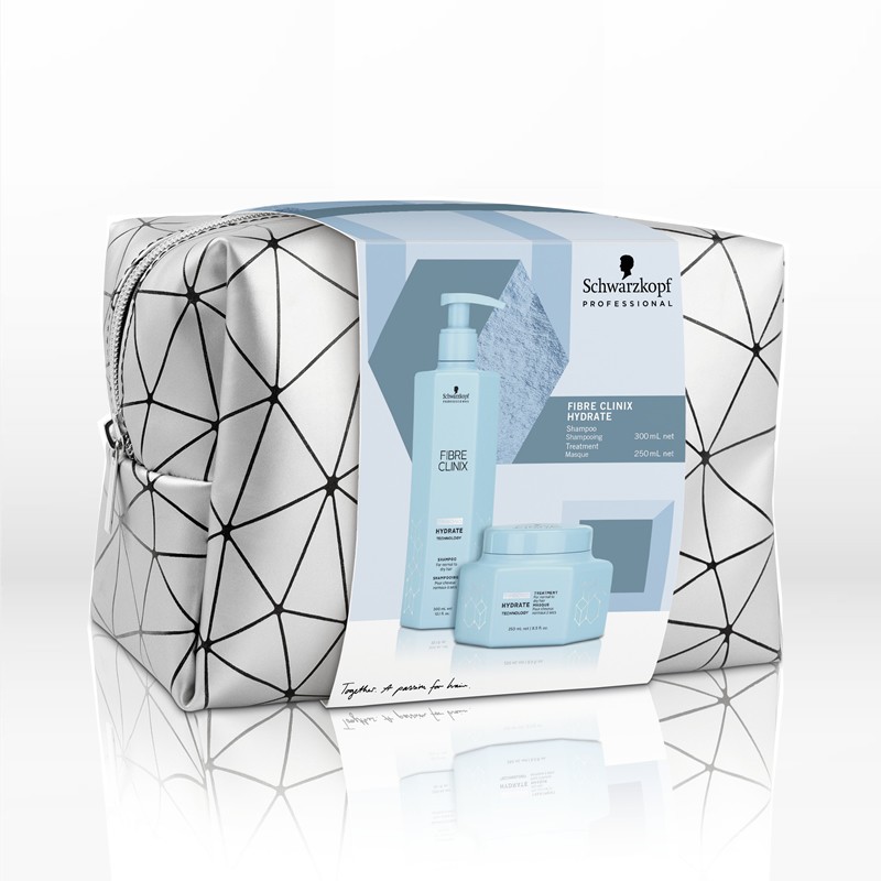 Schwarzkopf Professional Fibre Clinix Hydrate Christmas Bag Shampoo 300ml, Mask 250ml